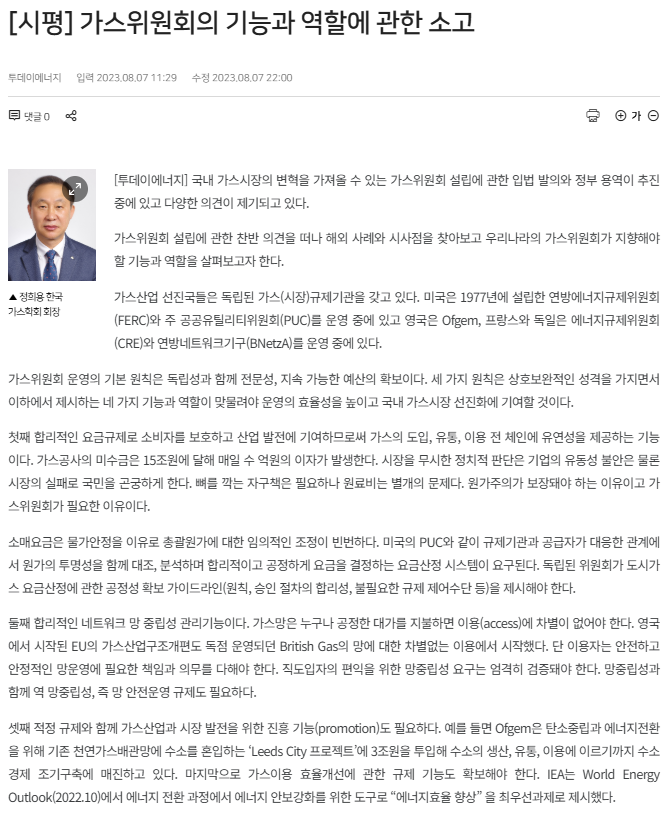 [기사][시평]가스위원회의 기능과 역할에 관한 소고