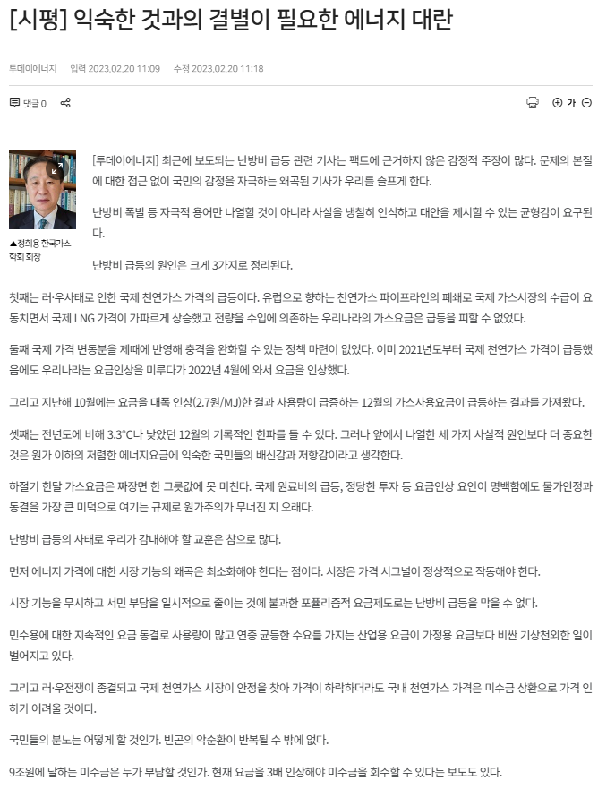 [기사][시평] 익숙한 것과의 결별이 필요한 에너지 대란